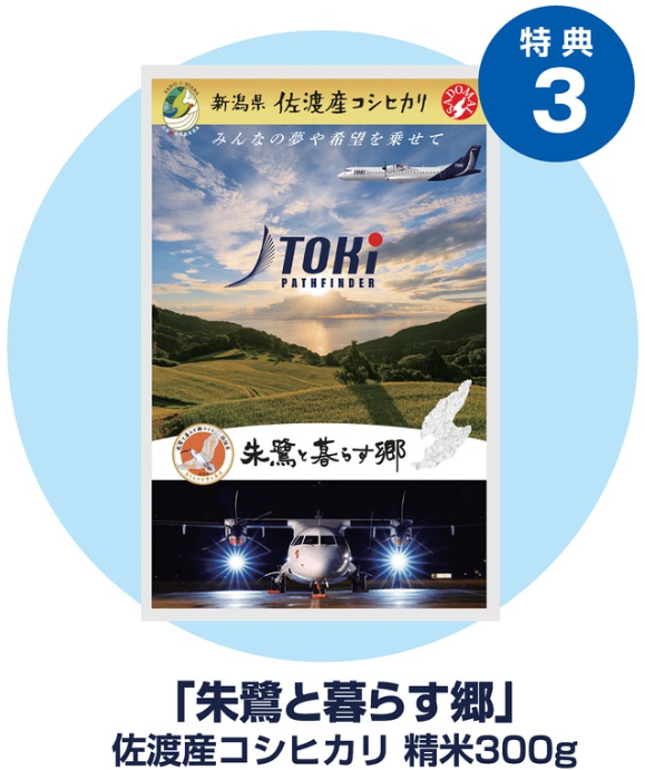 特典3 佐渡産コシヒカリ「朱鷺と暮らす郷」精米300g(トキエアパッケージ)