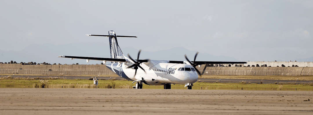ATR機は、世界で多くの地域路線で採用されている信頼性の高い機材であり、安全性において国際的に高い評価を得ています。また、客室は静粛性と快適性を重視した設計となっており、明るく広い窓からは美しい景色をお楽しみいただけます。さらに、ターボプロップ機であるATR機はジェット機と比べて燃費効率に優れており、二酸化炭素の排出量も少なく、最新の低騒音エンジンにより空港周辺環境にも配慮しています。